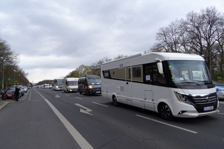Самой масштабной демонстрацией своей позиции стал проезд по Берлину более 1000 автодомов со всей Германии. Любители отдыха в домах на колёсах требовали немедленного открытия парковочных мест и кемпингов.