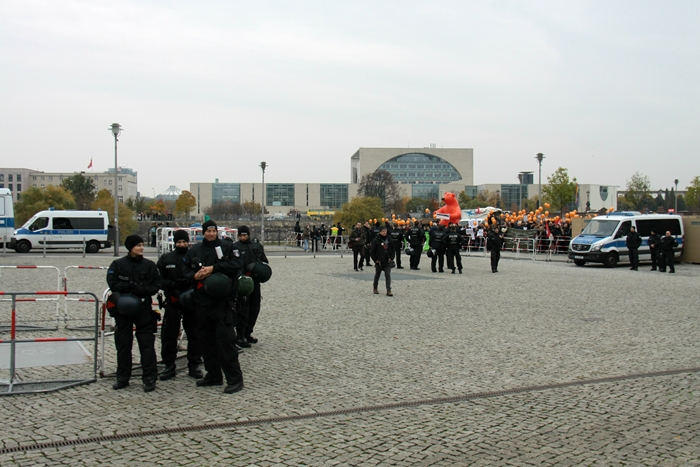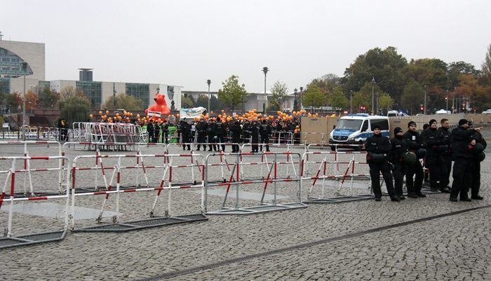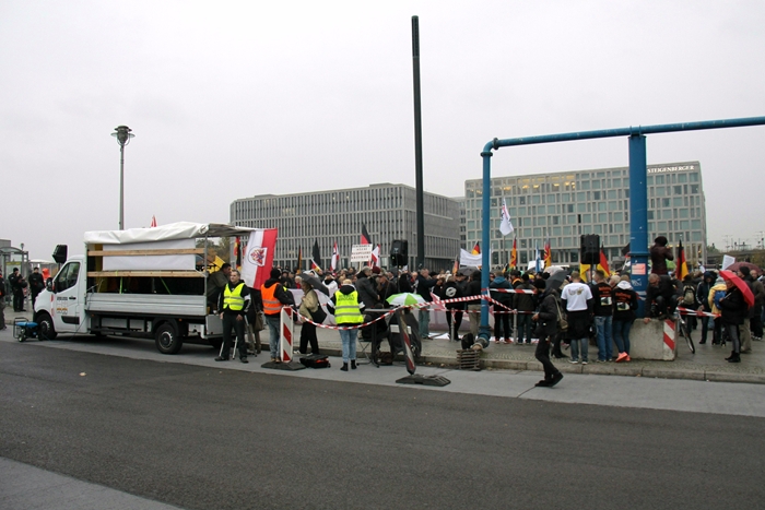 5 ноября в Берлине состоялось семь различных демонстраций, безопасность которых охраняли 1100 полицейских из Берлина, Саксонии, Бранденбурга и Рейнланд-Пфальц. Безусловно, главным событием дня стала акция правых под лозунгом «Меркель должна уйти», которая состоялась на традиционном месте – у Главного железнодорожного вокзала. Это была уже четвёртая подобная демонстрация в этом году.