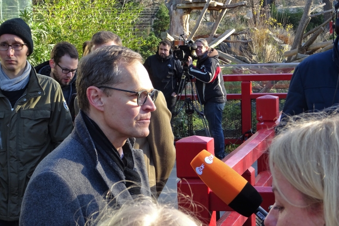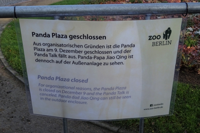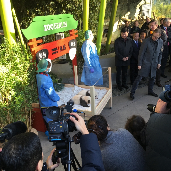 9 декабря один из самых популярных павильонов Берлинского зоопарка (Zoologischer Garten) – Panda Garden – был закрыт для посетителей. За забором можно было увидеть лишь самца Цзяо Цина (Jiao Qin), который занимался своим обычным занятием – с наслаждением поедал бамбуковые стебли. Выходной у семейства панд был вызван тем, что в этот день к ним пришли высокие гости и многочисленные представители СМИ. Повод для визита был очень весомый, но об этом немного ниже.