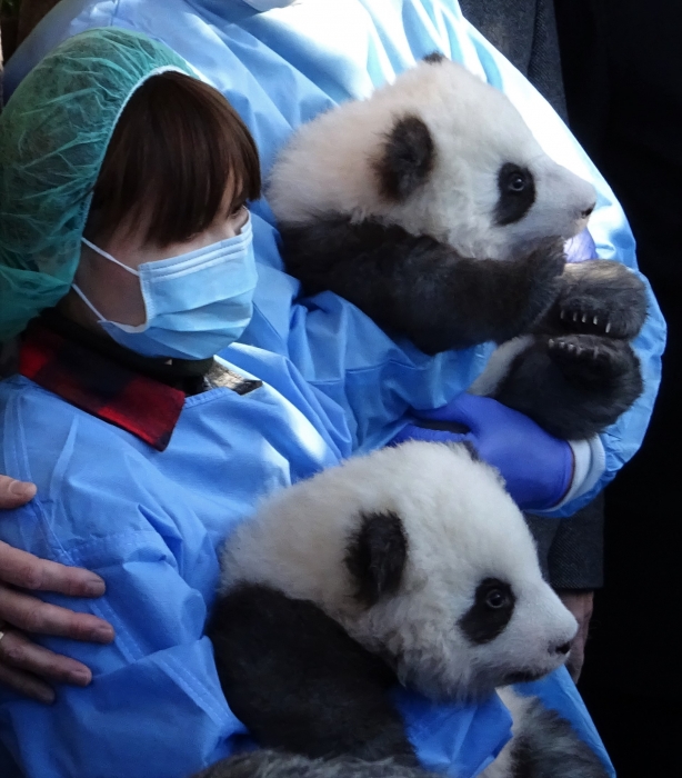 Самым трогательным моментом стало появление перед объективами камер самих виновников торжества – Мэн Сян и Мэн Юань, которых привезли в подогреваемом манеже. Весят они уже более шесть килограмм, начинают делать свои первые шаги и растут вполне здоровыми. За их развитием наблюдают китайские эксперты и немецкие специалисты.