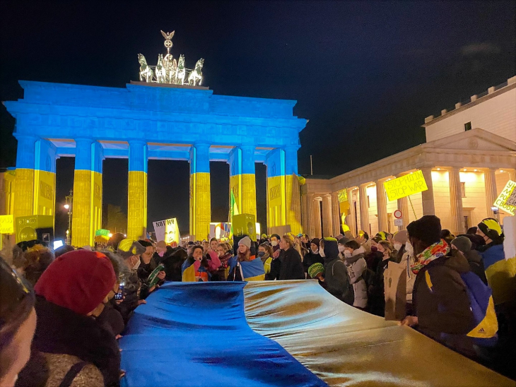 день в знак поддержки народа Украины подсвечивает Бранденбургские ворота