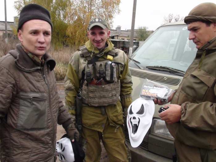 1. Это наш подбитый танк, возле Троицкого, хлопцы рядышком сделали мини-обелиск с именами погибших. 2. Застёгиваю паракорд своему боевому другу. Я своим вторым поделился. Паракорд – это шнур выживания. 3. Это мы втроём вышли на «нулёвку» (зона огневого контакта, именно там идут бои), пройтись, глянуть, всё ли спокойно. Я с оружием, в полной боевой разгрузке. Там по-другому нельзя. 4. Это я на позиции. Просто прицел выверял на Дашке (тяжёлый пулемёт ДШК калибром 12,7). 5,6. У меня в руках пробитые осколками каски наших бойцов, из 25 батальона, погибших от обстрела 122 мм минами, и сами эти каски. 7. Это позиция на самом «нуле», между Дебальцево и селом Луганское. Мы стоим уже за самим селом, всего в трёх с половиной км от Дебальцево. А «Весёлый Роджер» это я хлопцам привёз. 8,9. Разгружаем резину и рубероид, а также маскировочные белые сети, которые мне передала Евдокия Романчич, тоже безбашенный волонтёр. 10. Журналист Игорь Русин раздаёт детям фрукты, конфеты и печенье. Это или Майорск, или уже за ним даже. Честно, не помню. 11. Это Жованка, «серая» зона. То есть уже за нашими позициями. Мы и туда забираемся. 12. Дети в бывшем баре, переделанном под клуб, в Майорске. 13. Где-то на «нулях», под Дебальцево. В день по три-четыре «нулёвки». 14. Юля Кириллова. Умница и красавица. Провоевала почти два года, сейчас на дембеле. 15. Это азербайджанец. Позывной ДиВиДи. Родом из под Киева. Воюет в 25 батальоне почти три года. 16. Катя Авруцкая из Харьковской области. В 19 лет пошла добровольцем. 17,18,19,20,21,22. Просто волонтёрские будни и наши бойцы. 23. Разведка «Киевской Руси». Мои друзья с начала 2015 года. Маски я им привёз для прикола, на сепаров жути нагонять.