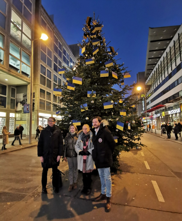 американському послу. Цього року на ялинці тільки українські прапорці, і