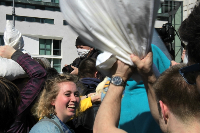 2 апреля в рамках Всемирного дня боя подушками (World Pillow Fight Day Berlin 2016) состоялась битва и в Берлине. Это был не флешмоб – люди, ехавшие к Бранденбургским воротам, ни от кого свое «оружие» не прятали. Все терпеливо ожидали команду к началу схватки, и сразу же после того, как она прозвучала, начали мутузить окружающих.