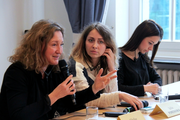 На встрече, которую модерировала немецкая журналистка Ульрике Бутмалою (Ulrike Butmaloiu), спикерами выступили Юлия Пименова («Станция «Харьков»), Юлия Сенянская («Украина – моя семья», Донецк/Ровно), Елена Нижельская («Кризисный медиа-центр «Северский Донец», Северодонецк, Луганская область), Юлия Федотовских («КрымSOS», Киев), Инна Романова («Право на защиту», Киев), Мария Бойко («Восток SOS», Луганская область) и некоторые другие.