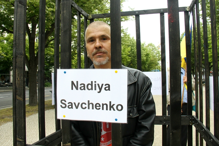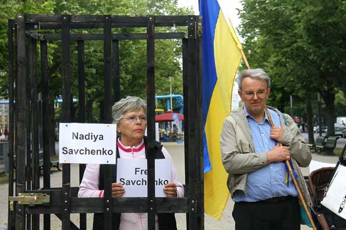 Нужно сказать, что помимо Надежды Савченко прозвучали фамилии и других украинцев, которые в настоящее время неправомерно удерживаются российскими властями, в том числе и режиссера Олега Сенцова. Кстати, для того, чтобы продемонстрировать свою солидарность с ними, в принесенную клетку добровольно себя заключили еще несколько человек, в том числе бывшие политзаключенные ГДР.