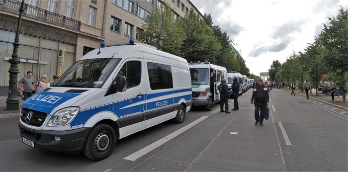 Демонстрация не обошлась без противостояния с полицией. Ближе к вечеру в районе посольства России стражи порядка заблокировали продвижение демонстрации. Причина – нарушение социальной дистанции в полтора метра. Недовольными этим оказались прежде всего «рейхсбюргеры» и другие ультраправые. В один из моментов они начали скандировать: «Путин! Путин!», кто-то выкрикнул на немецком: «Путин, помоги!». Полиция требовала повернуть назад, демонстранты стали сопротивляться, некоторые сели на асфальт. В итоге после уговоров около 200 человек были временно задержаны и препровождены в полицейские машины. Среди них оказался и известный теоретик заговоров, повар-веган Аттила Хильдманн (Attila Hildmann). Напомню, что недавно сети Kaufland и Vitalia, а также компания Voelkel отказались от дальнейшего сотрудничества с ним и перестали продавать его продукты для веганского питания, чтобы дистанцироваться от идеологии, которую Хильдманн распространяет в интернете.
