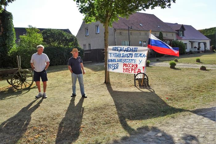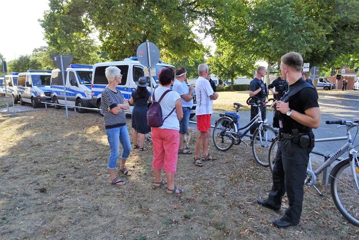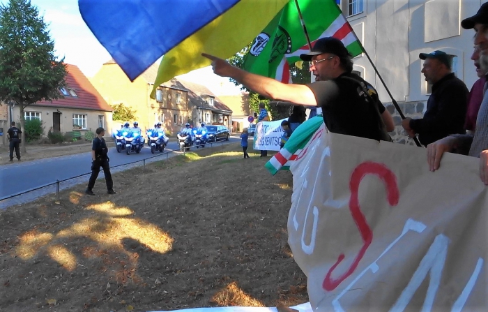 На подъезде к деревушке нас встретили два полицейских пикета. Особой строгости не было – быстрая проверка журналистских удостоверений и разрешения на проведение пикета. Но, понятно, что просто так в этот день кто угодно в Мезеберг бы не попал.
