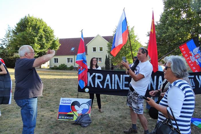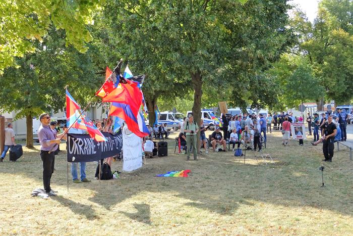 Были о отдельные участники протестной акции. Так из Дахау приехала Мадина Магомедова, которая требовала освободить российского заключённого Алексея Пичугина, а какая-то немка периодически кричала, что Меркель должна уйти.