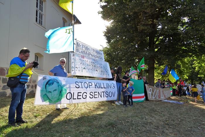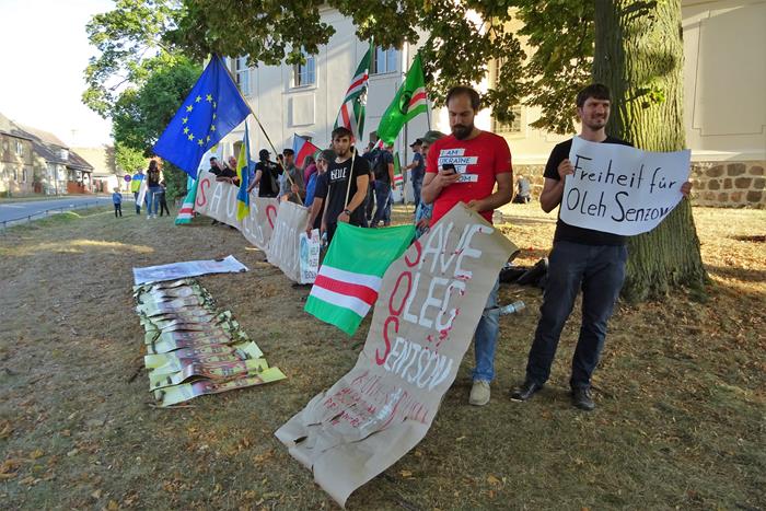 Итак, 18 июня в дворце Мезеберг федеральный канцлер Германии Ангела Меркель (Angela Merkel) встречалась с президентом РФ Владимиром Путиным. Как только появилась информация о предстоящем саммите, украинцы из интернет-сообщества Save Oleg Sentsov во главе с Александром Снидаловым и проживающие в Германии россияне из «Форума русскоязычных европейцев в Германии» решили устроить российскому лидеру достойную встречу, потребовав освобождения Олега Сенцова и других политзаключённых, томящихся в застенках Кремля. Их инициативу поддержали и местные чеченцы, выступающие против нынешних властей Чеченской Республики.