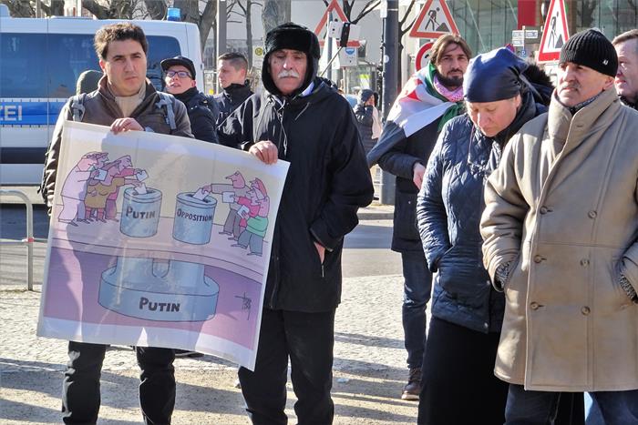 На акции присутствовали представители чеченской диаспоры, а также сирийцы. Звучали требования к России убрать руки от Чечни, Сирии, Украины и, естественно, полные надежды лозунги: «Россия будет свободной!» и «Россия без Путина!».