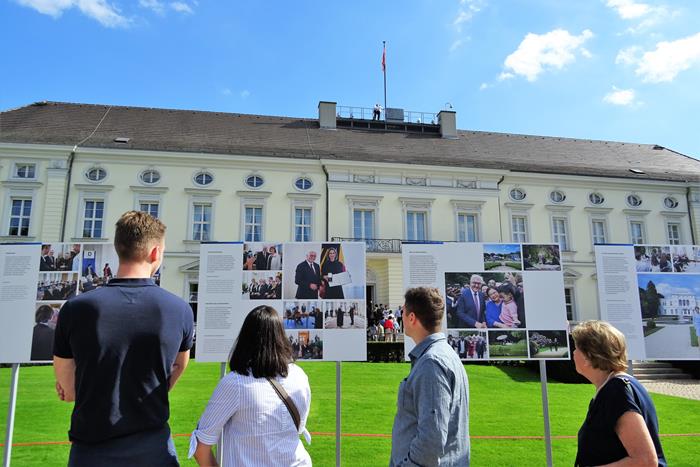 Перед входом во дворец были установлены фотостенды, которые наглядно демонстрировали все грани трудовых будней федерального канцлера Германии. В самом здании можно было пройтись по первому и второму этажам, что вполне позволяло составить о нём впечатление. Особый интерес у посетителей вызывали банкетные залы, галерея, комната с портретами предшественников Франка-Вальтера Штайнмайера и рабочий кабинет бундеспрезидента.
