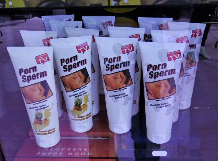 стенды с дешёвыми товарами из секс-шопов. Видать, люди сейчас предпочитают платить