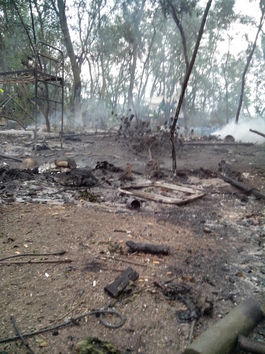 На фотографиях из архива Сергея Герчака: зона АТО, в полях под Славянском и Амвросиевкой, после обстрела «Градами» и САУ, четверногий полевой боевой друг, дорога домой, передача гуманитарной помощи, образец пошитых организацией и отправленных в зону АТО маскхалатов, встреча с учениками школы-интерната №13, передающих рисунки бойцам АТО.