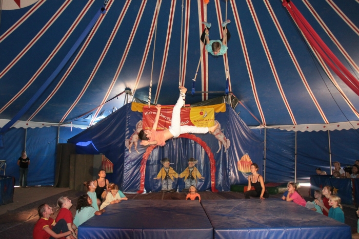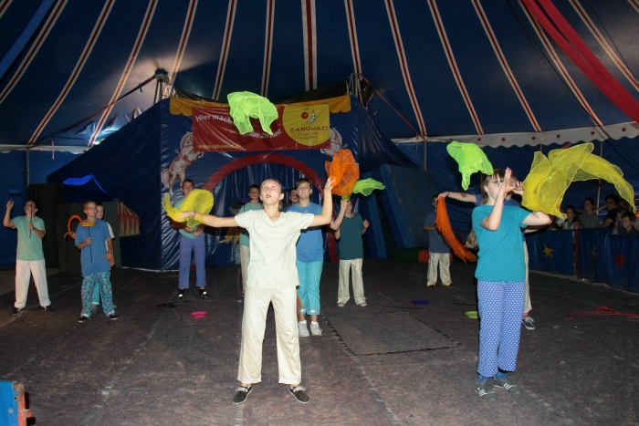 Как известно, смены эти были не простые, а цирковые. Преподаватели из берлинской цирковой студии Cabuwazi обучали украинских ребятишек азам этого старинного искусства. Заканчивался отдых представлением на настоящей арене в специальном шатре, установленном на территории лагеря. Вот и 29 августа заключительный в этом году заезд завершился большим гала-шоу, в котором приняли участие 40 украинских детей и 18 юных жителей Берлина. Да-да, немецкие дети с удовольствием занимались вместе с украинскими сверстниками, знакомились, общались…